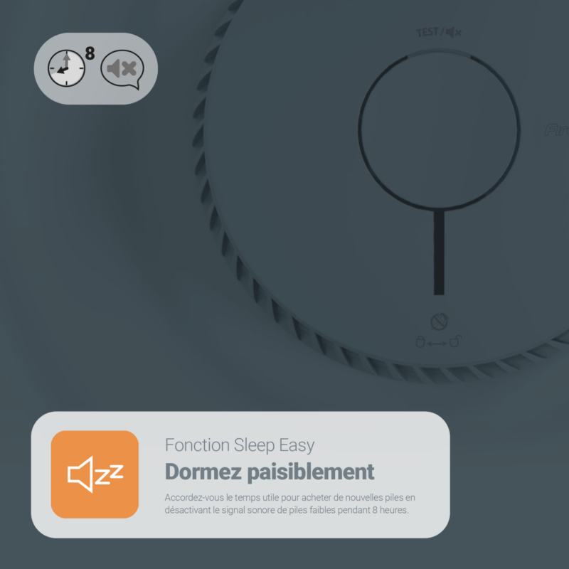 - Donnez-vous le temps de remplacer les piles de votre alarme en faisant taire les avertissements de batterie faible pendant 8 heures à l’aide de la fonction de mise en veille facile